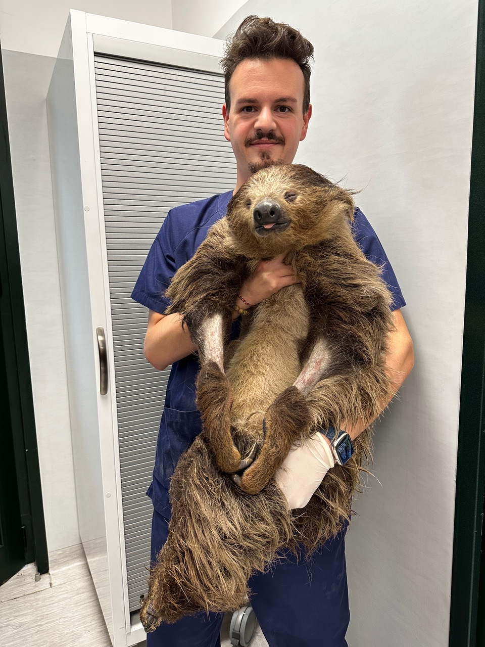 Un altro caso eccezionale ha visto protagonista una femmina di Bradipo didattico (Choloepus didactilus) di 8 anni, ospitata in un parco faunistico. La paziente è stata portata in clinica per sospetta polmonite, una condizione che richiedeva diagnostica avanzata e trattamenti non eseguibili in campo.