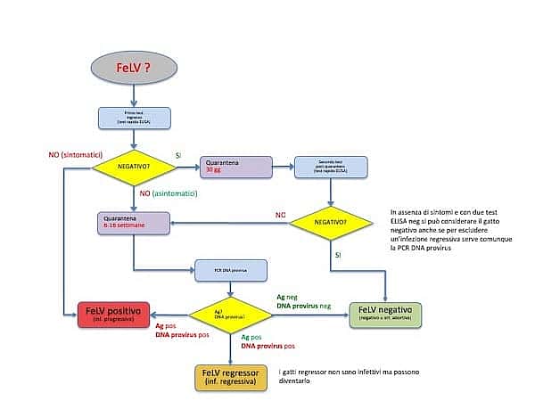 Per le caratteristiche del FeLV, la diagnosi effettuata con un solo test antigenico (ELISA) non è definitiva (un positivo può andare in regressione, un negativo essere in regressione e ritornare ad essere viremico).